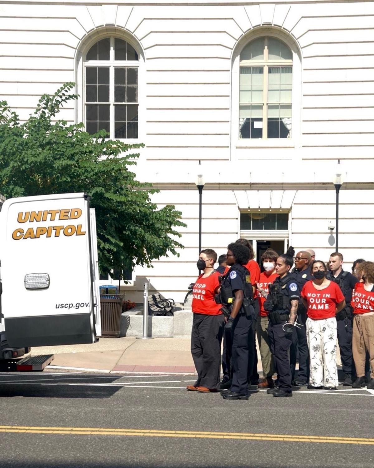 Polisin barışçıl gösteriyi sonlandırma çağrısına uymayan grubun üyeleri plastik kelepçe takılarak gözaltına alınırken, Capitol Polisi’nden yapılan açıklamada gösterinin “yasadışı” olduğu belirtildi.