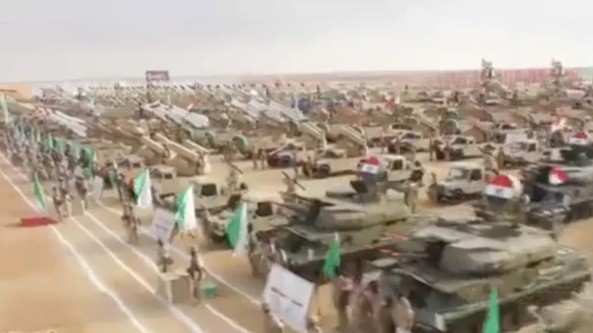 Yüksek irtifa füze sistemleri, hava savunma silahları, yüzlerce tankın sergilendiği o anlar ise Mısır devlet televizyonundan dünyaya servis edildi.