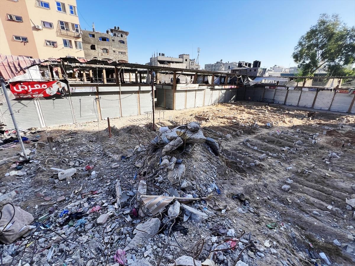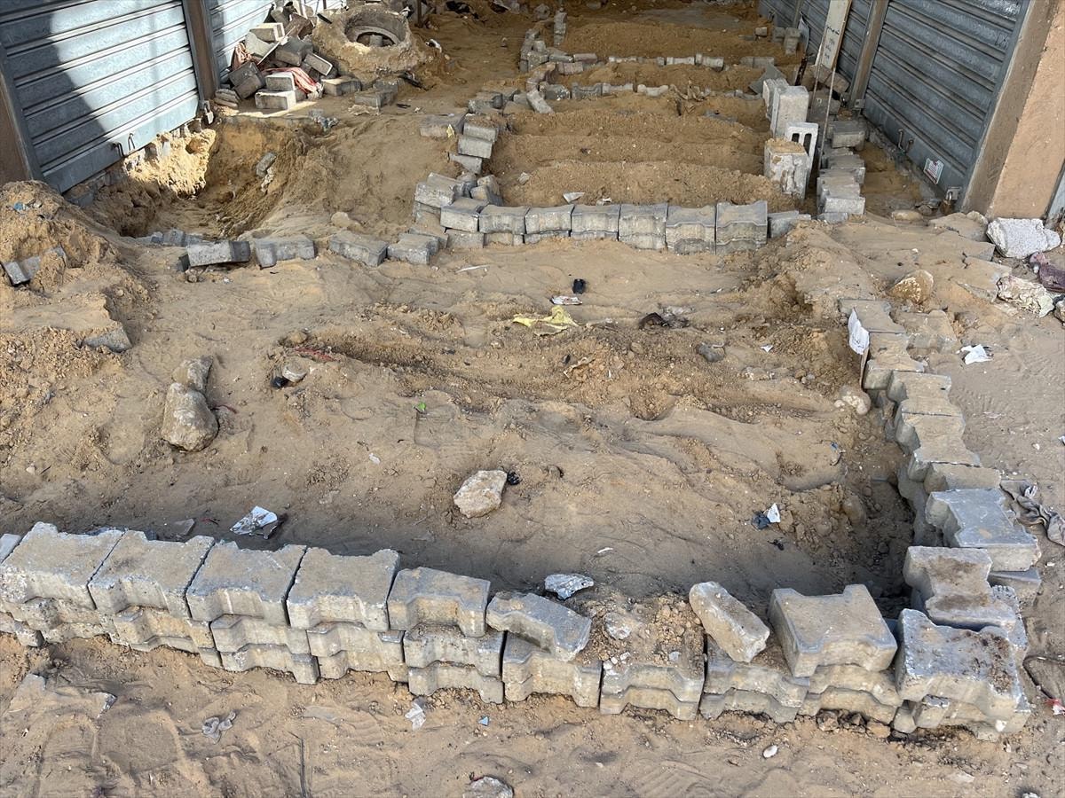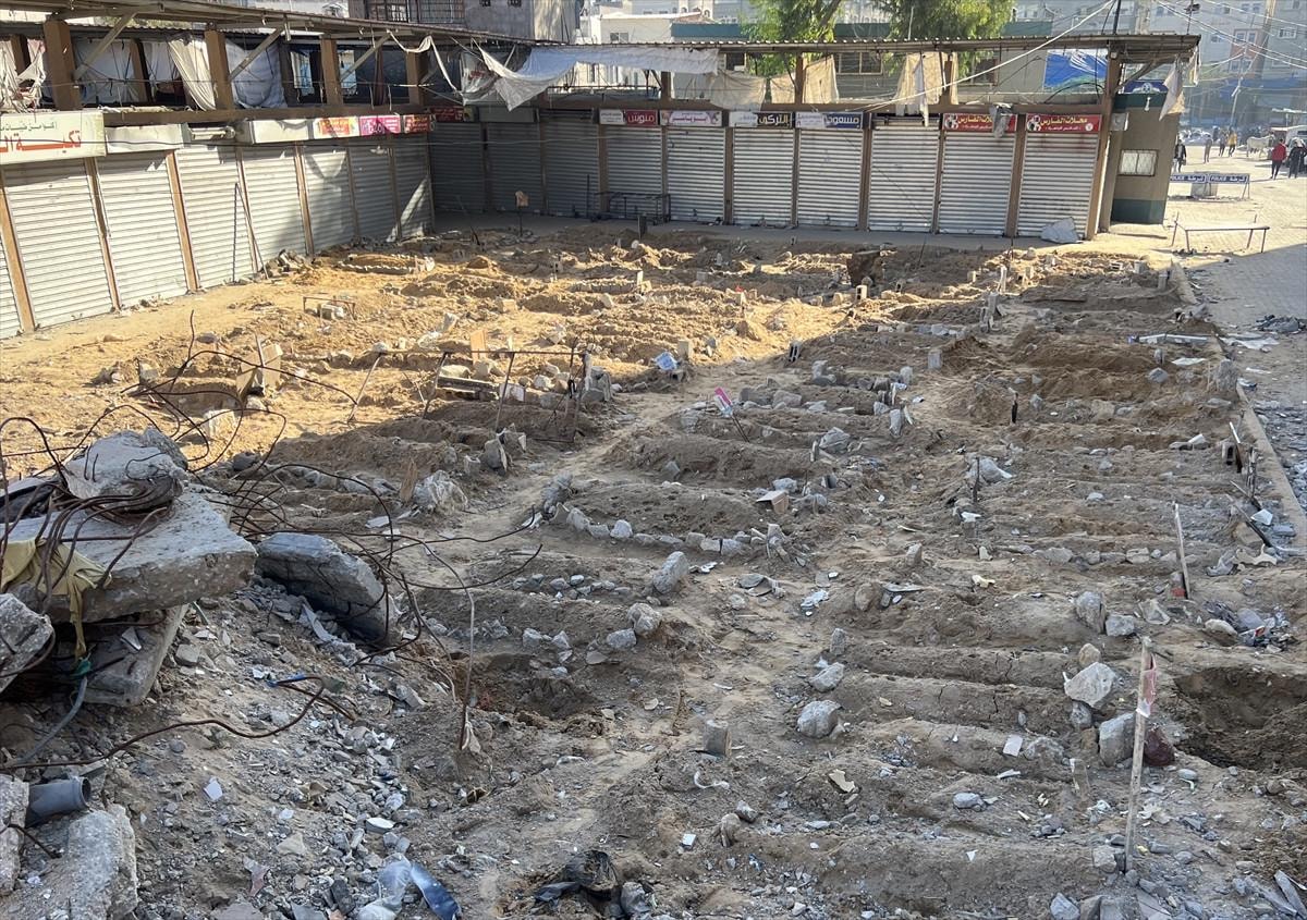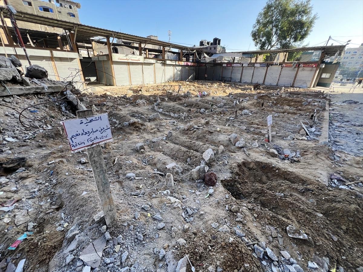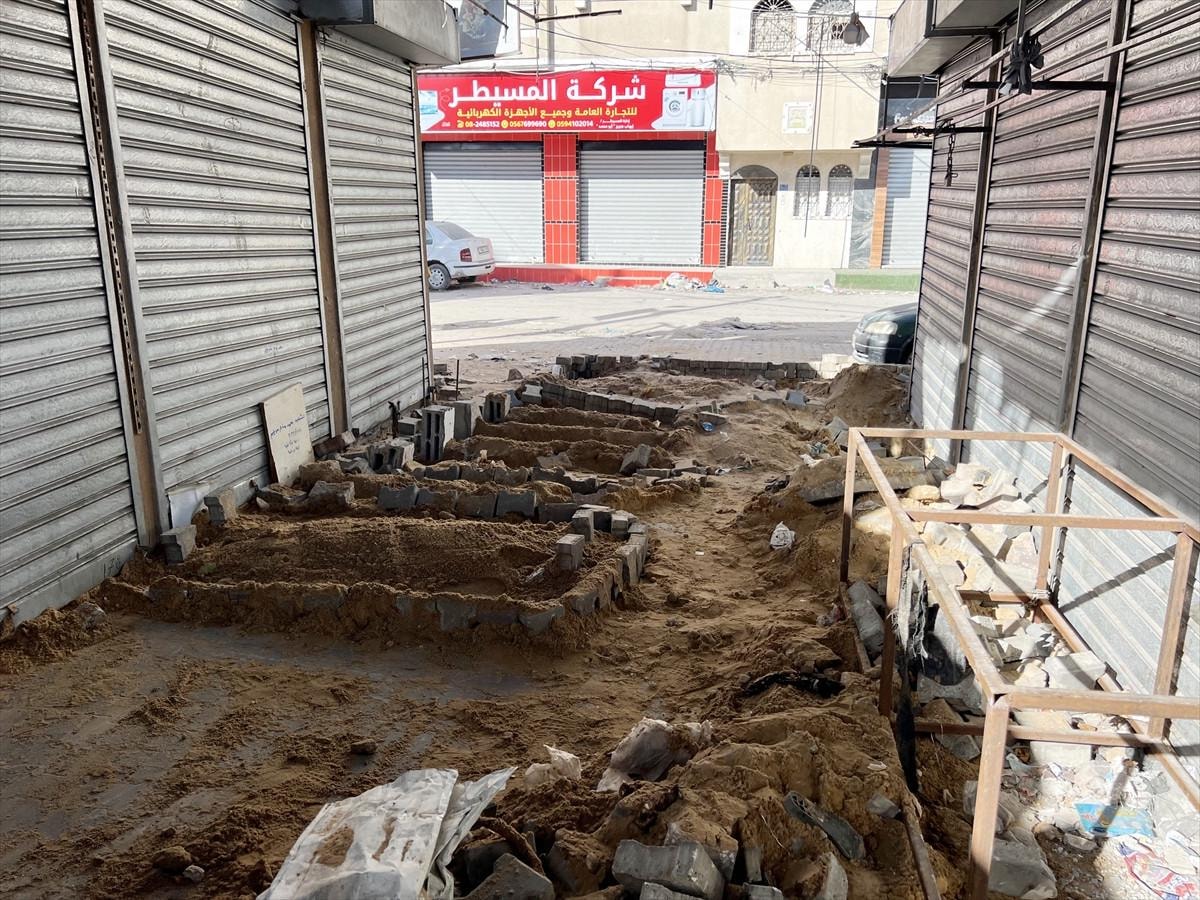 Havadan ve karadan saldırıların sürdüğü Gazze'de bulunan Cibaliya Mülteci Kampı'nda kabristanların dolması ve yoğun saldırılar nedeniyle mezarlıklara ulaşılamadığı için halk, saldırılarda hayatlarını kaybeden yakınlarını çarşıda defnediyor.