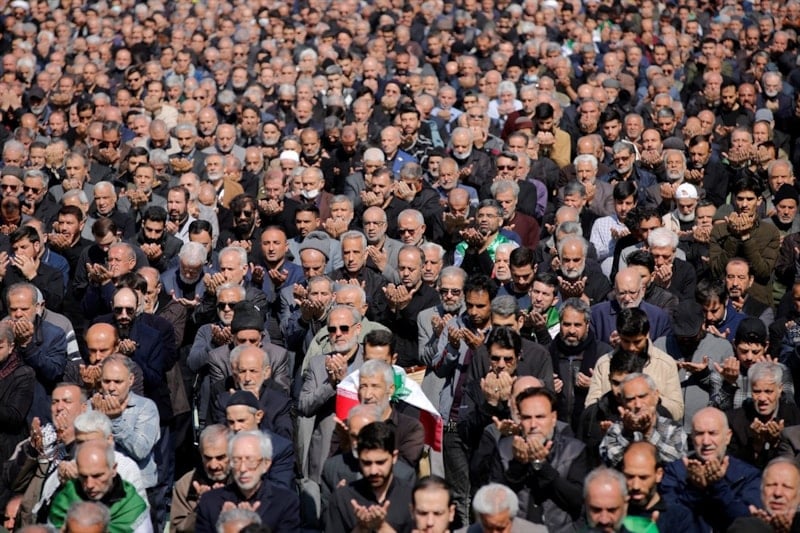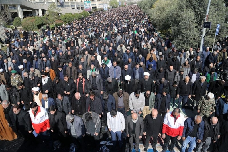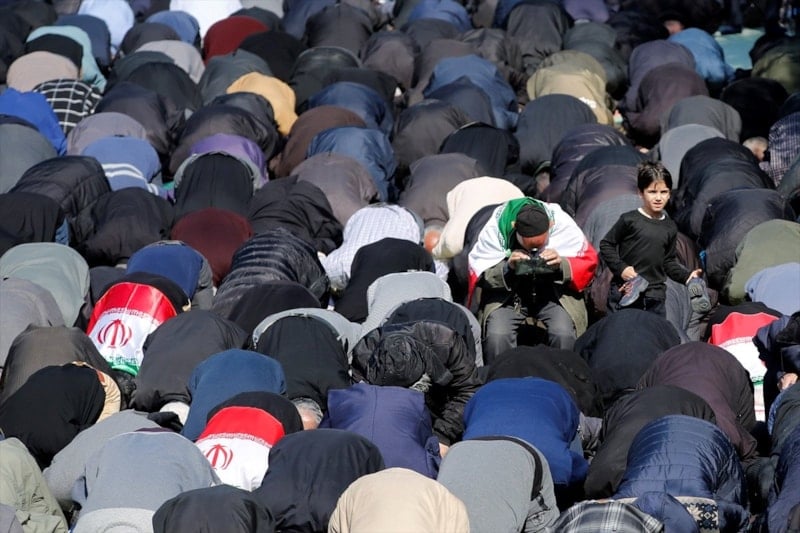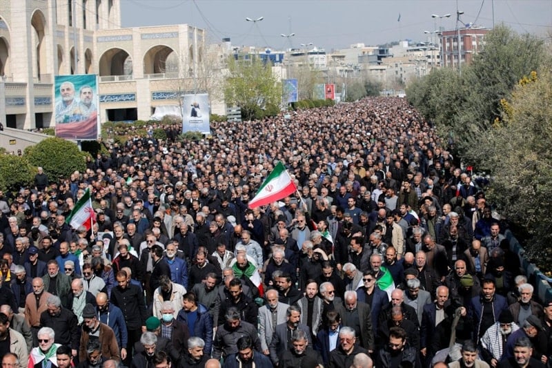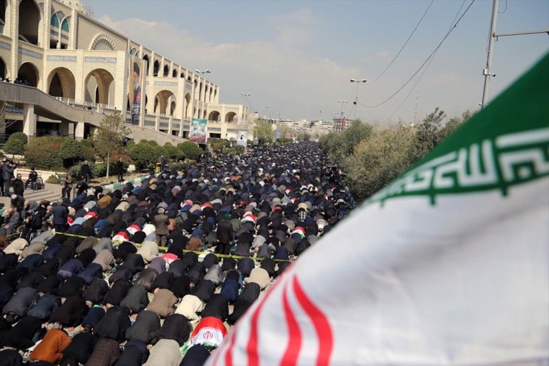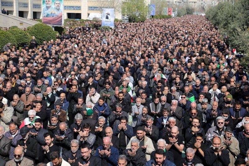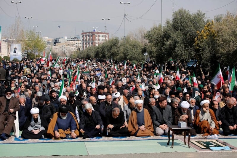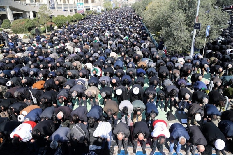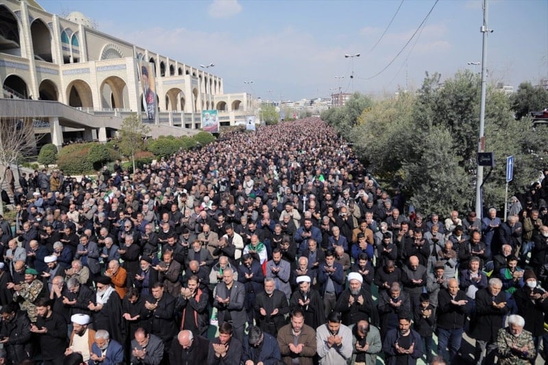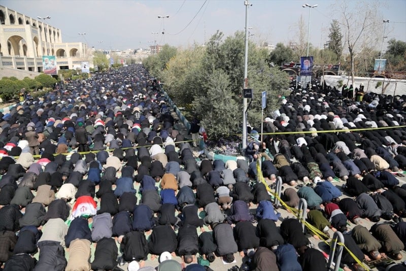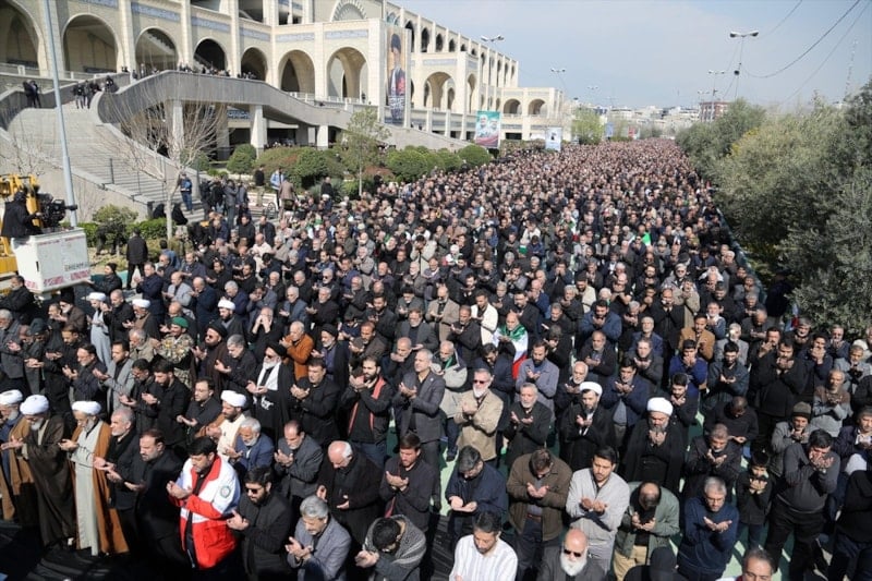 Tahran’daki en büyük ibadet alanlarından biri olan İmam Humeyni Musallası çevresinde toplanan binlerce kişi, saldırılarda hayatını kaybedenleri anarken İran ordusu ve Devrim Muhafızları’na destek mesajları verdi.