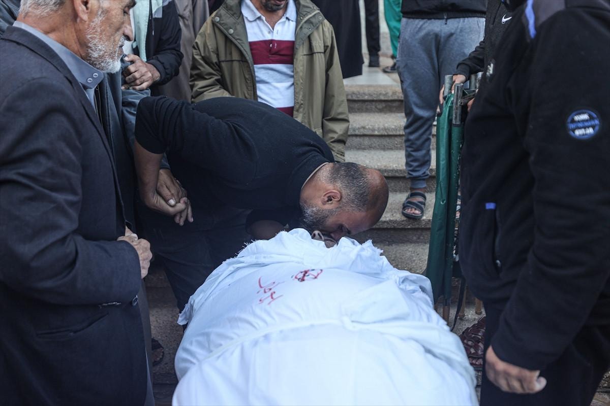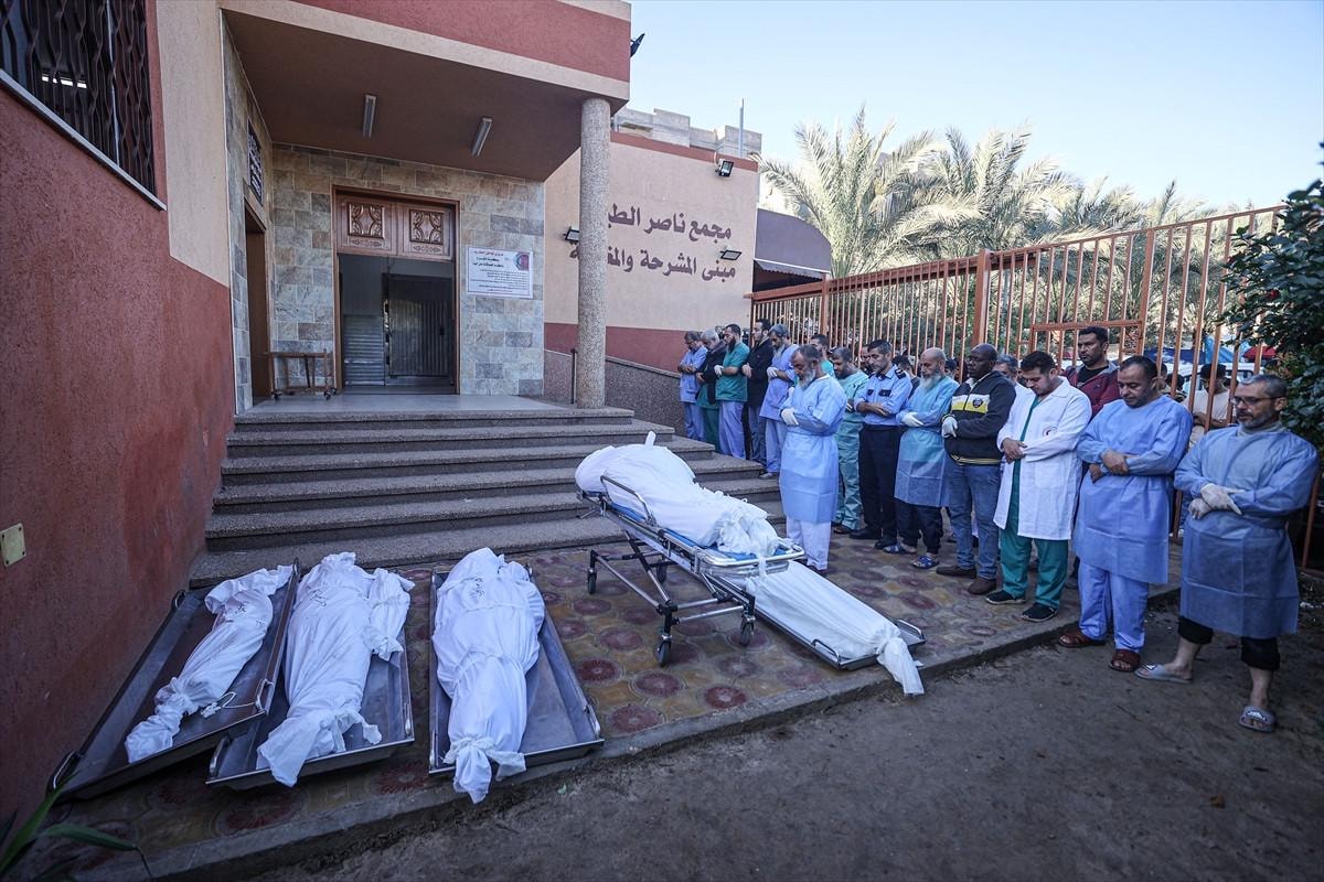 Saldırılarda hayatını kaybedenlerin naaşları, yakınları tarafından cenaze namazı kılınıp toprağa verilmek üzere Han Yunus kentindeki Nasır Hastanesi morgundan alındı.