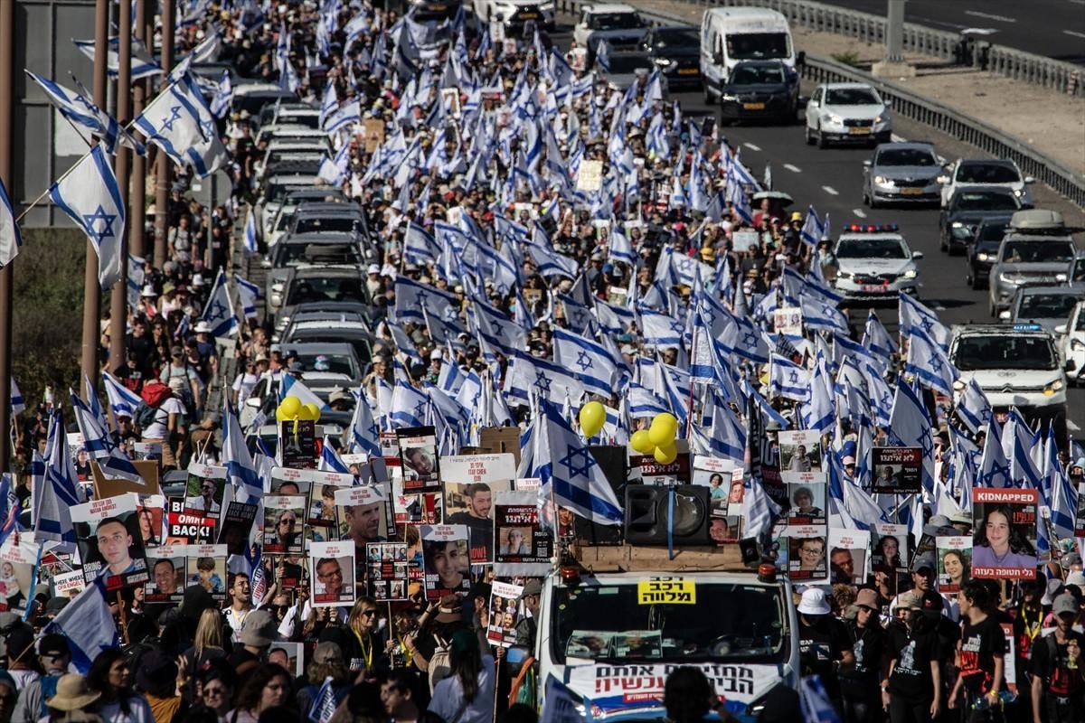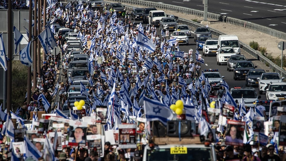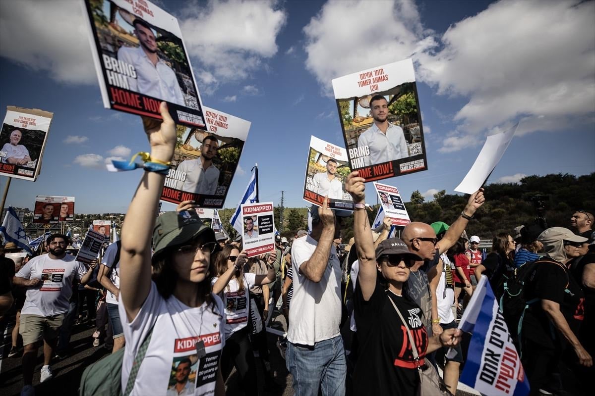 Gazze Şeridi'ndeki esirlerin yakınları ve onlara destek veren çok sayda İsrailli, harekete geçerek eylem düzenledi.