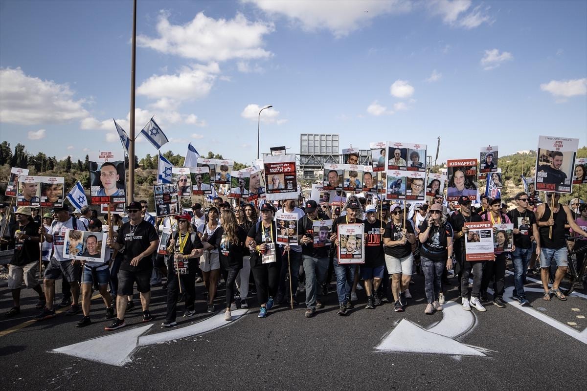 Aileler, hükümeti protesto etmek amacıyla İsrail Başbakanlığı Ofisine doğru yürüyüş yaptı.