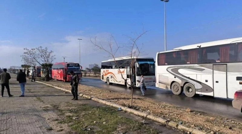 Operasyonlar sonrası teslim olan SDG'lilerin farklı bölgeler götürülmesi için otobüsler hazırlandı.