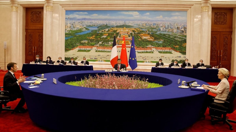 Fransa Cumhurbaşkanı Emmanuel Macron ve Avrupa Komisyonu Başkanı Ursula von der Leyen, Pekin'de Çin Devlet Başkanı Şi Cinping tarafından ağırlandı.