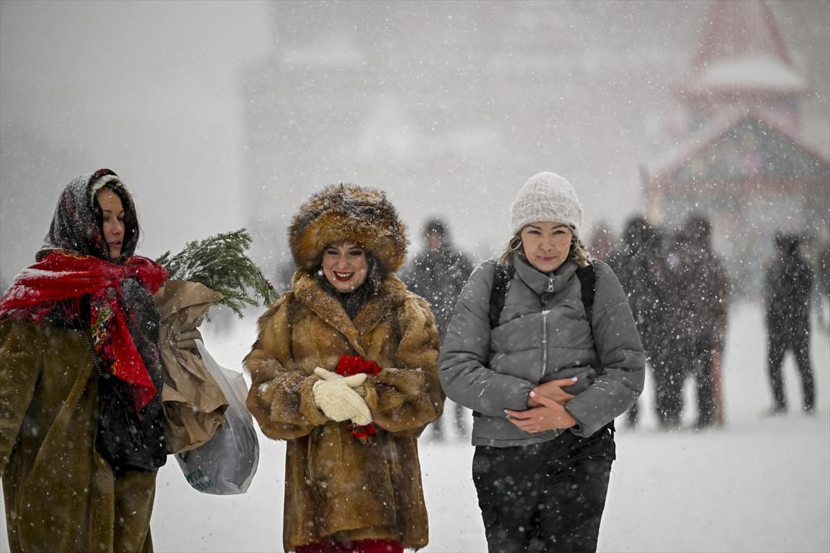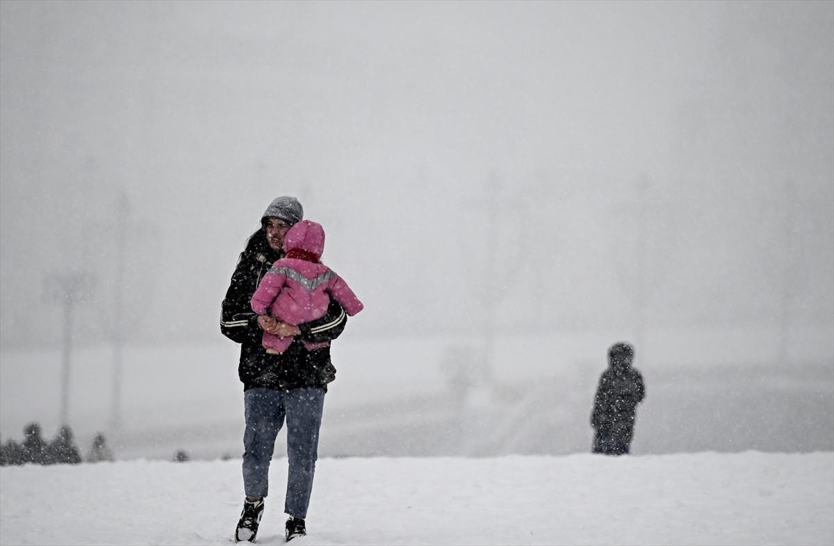 Karlı havada yürüyenler kadar, kayak yapanlar da vardı. Bazı araçlar yolda kalırken, kar küreme çalışmaları için ekipler harekete geçti.