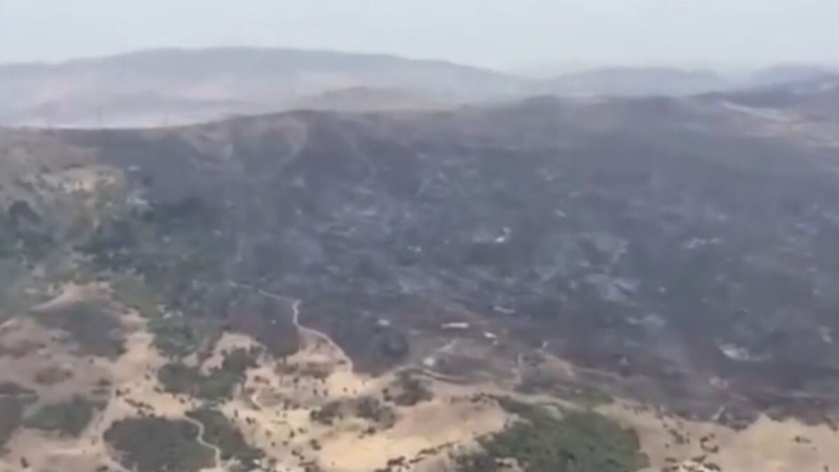 Görüntülerde büyük bir alanın küle döndüğü net bir şekilde görülüyor.