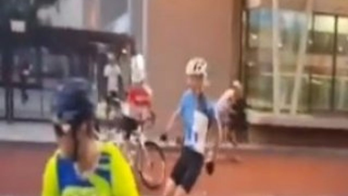 Cape Town'da yarışma için bir araya gelen bisikletçiler, pedal bile çeviremeden yola savruldu.