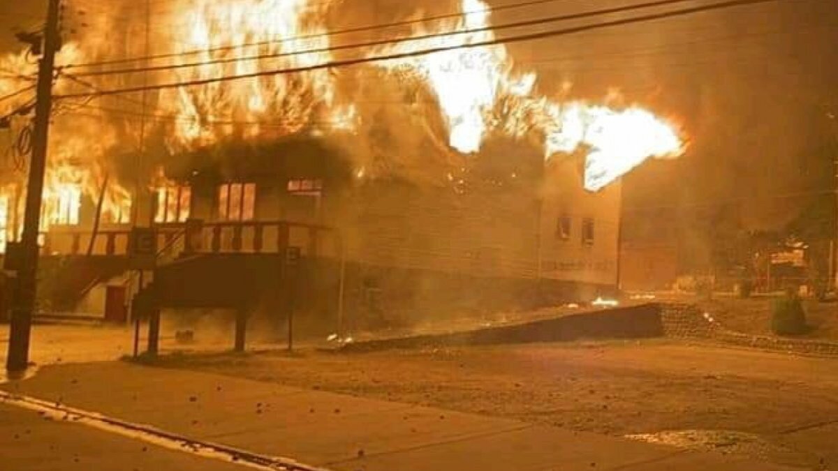 Sosyal medyada yer alan görüntülerde, belediye binasının alev alev yandığı görüldü.