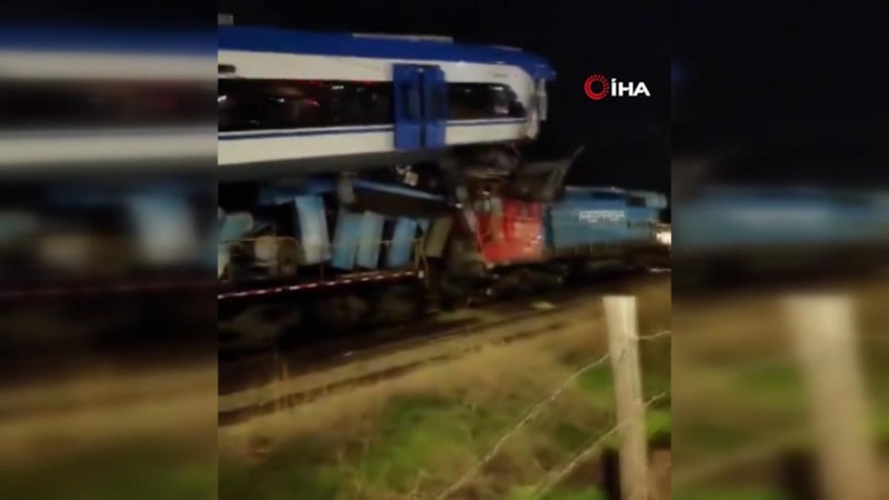 Test sürüşü yapan trenin bir vagonu, yük treninin üzerinde asılı kaldı. Bölgeye polis, itfaiye ve sağlık ekipleri sevk edildi.
