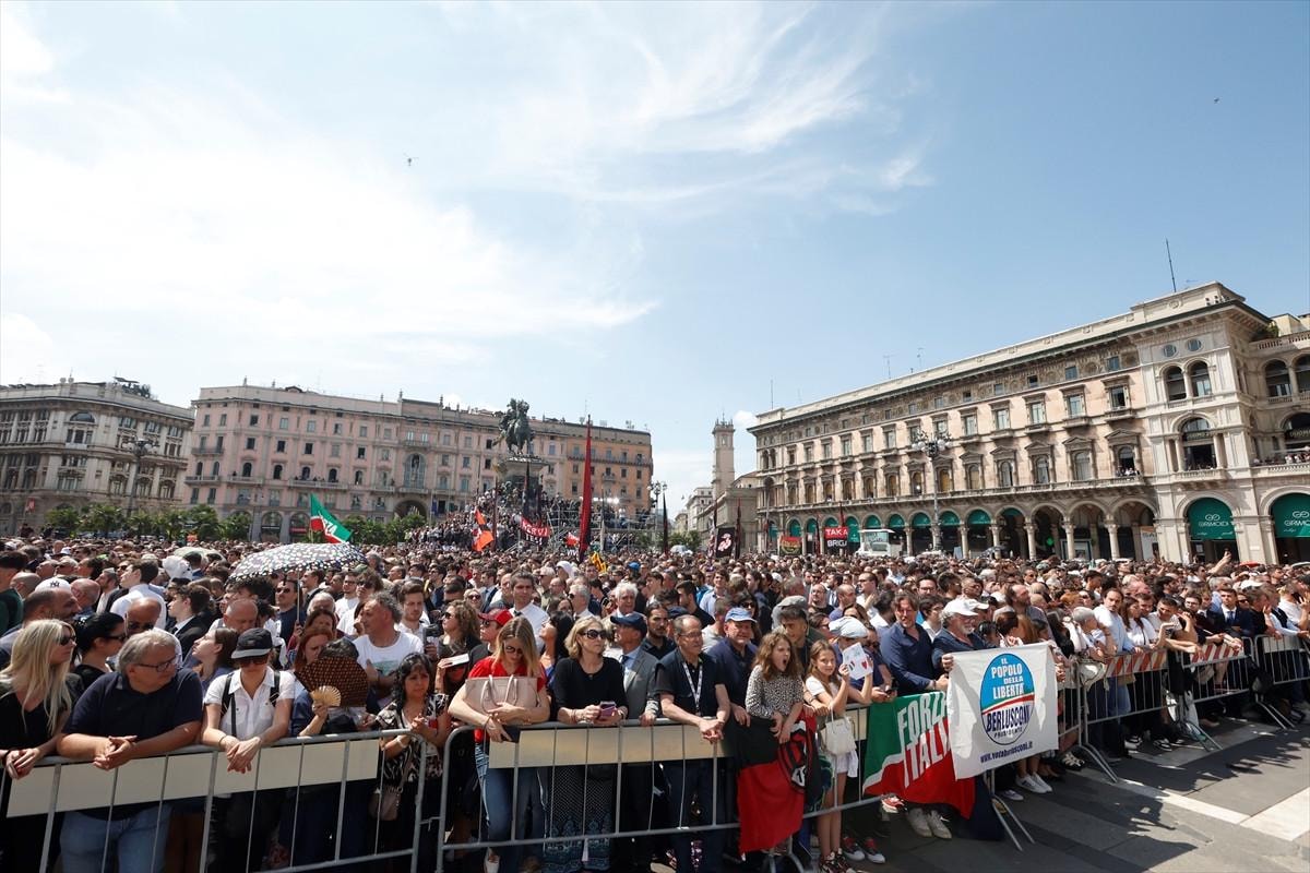 Berlusconi'nin destekçileri, cenaze töreninin gerçekleştiği katedralin etrafında toplandı.