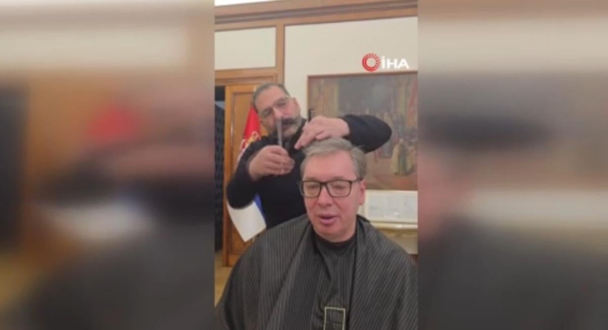 Vucic, akşam saatlerinde katılacağı bir televizyon programı için saç tıraşı olduğu sırada paylaştığı videoda, usturayı boynunun etrafında gezdiren berberine Cumhurbaşkanı Erdoğan'ın korumasına benzemesi nedeniyle güvendiğini ifade etti.