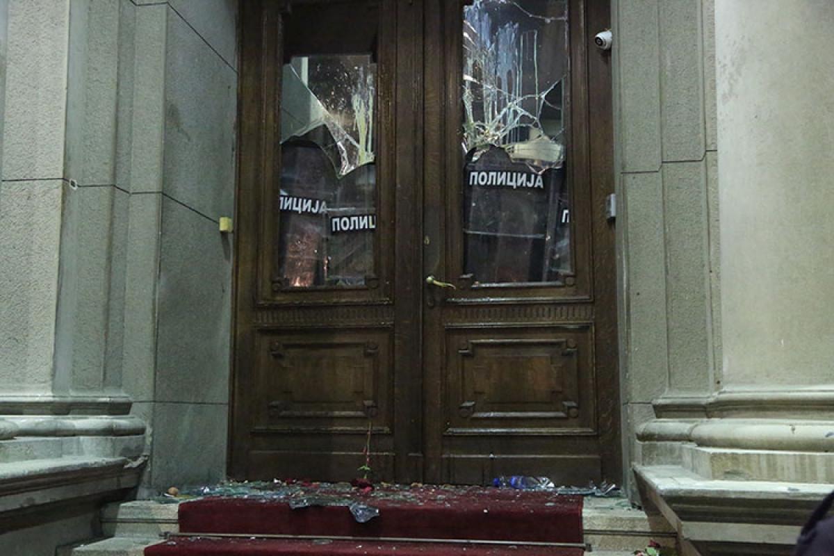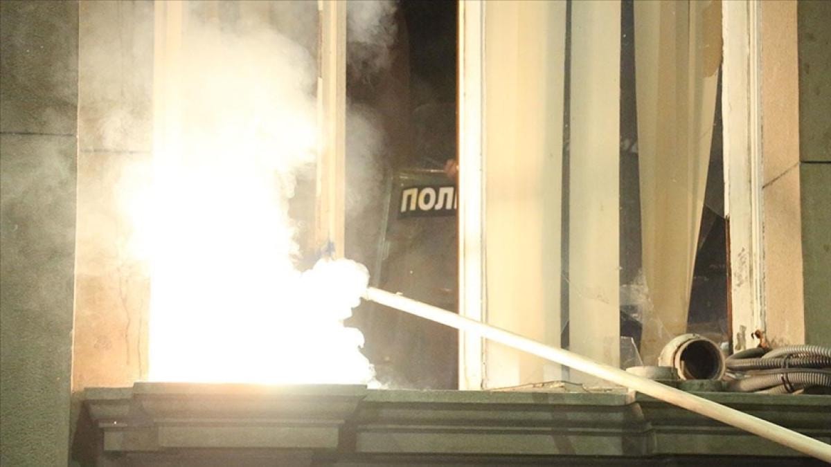 Belgrad Belediye Meclis binasına girmeye çalışan göstericiler, polis müdahalesiyle karşılaştı.