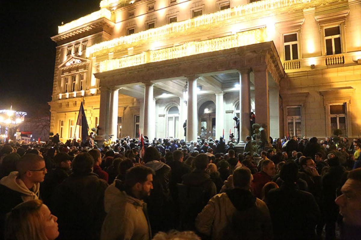 Ülkedeki seçimlerin yenilenmesi çağrısında bulunan göstericiler buradan Belgrad Belediyesi Meclis binasına yürüdü.