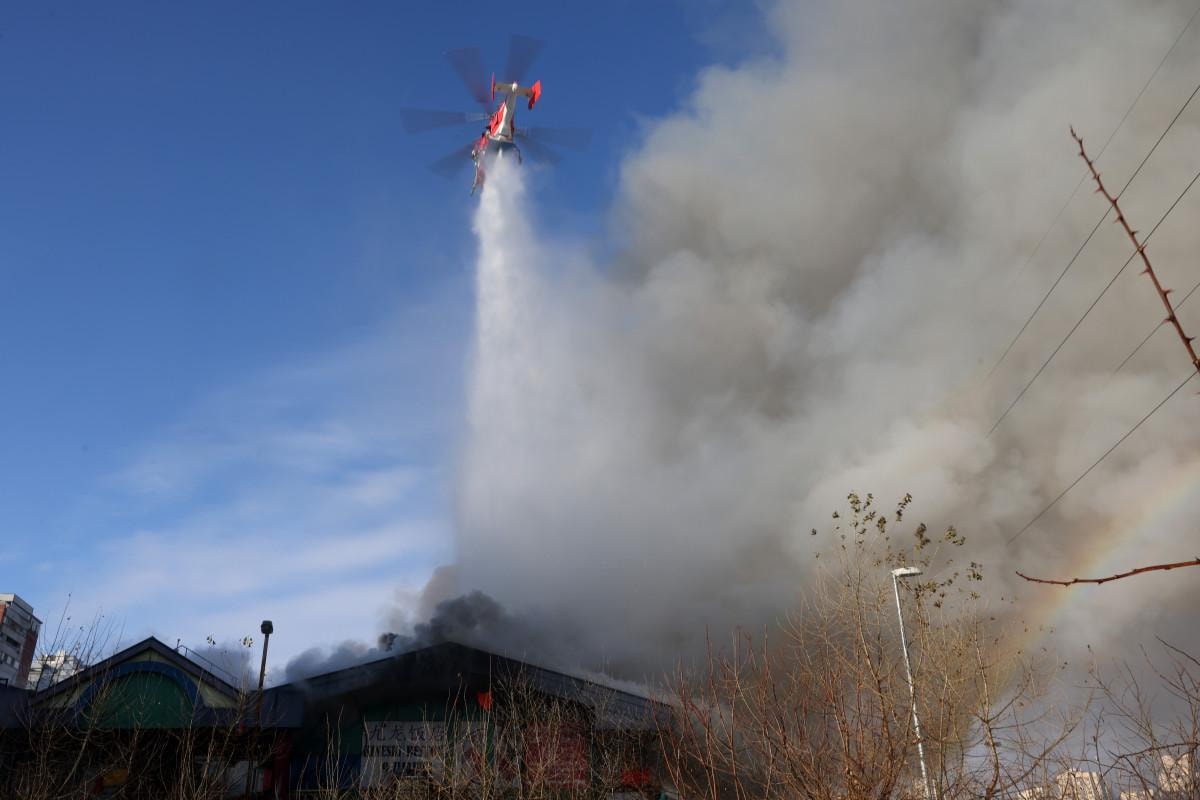 Çinli satıcılara ait dükkanların yer aldığı alışveriş merkezinde çıkan yangın, yaklaşık 3,5 saatte kontrol altına alındı.