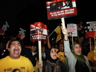 İngiltere'de yerleşik Mısırlıların yanı sıra birçok insan hakları ve demokrasi destekçisi sivil toplum örgütü ile sendikanın desteklediği "Stop Sisi" kampanyası tarafından Londra'daki Başbakanlık önünde düzenlenen protesto gösterisine, her yaş grubundan çok sayıda kişi katıldı.