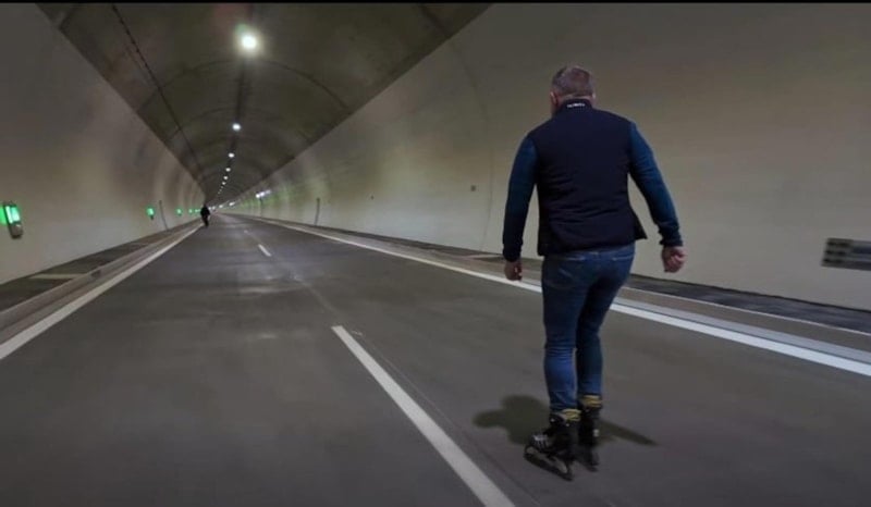 Tünel içinden görüntüleri sosyal medyada paylaşan Fico, "Bu fırsatı kaçırmak istemedim ve tünelin tamamını paten kayarak geçtim." dedi.