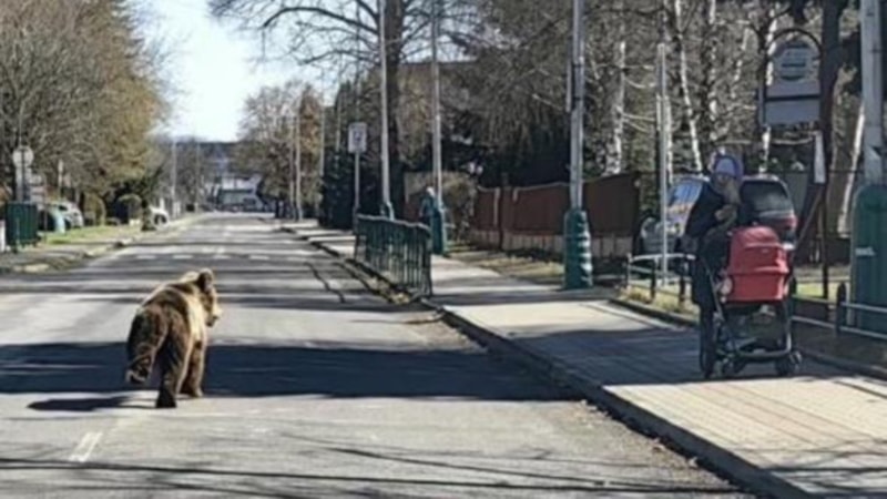 Slovakya'nın Liptovsky Mikulas kasabasına inen ayının saldırısına uğrayan 2 kişi hastaneye kaldırıldı.