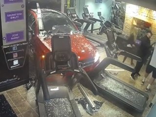 Kaliforniya Culver City'deki bir spor salonunda meydana gelen kazada, kadın sürücü bir anlık dalgınlığı sonucu gaza yüklenerek, önünde bulunan spor salonunun vitrinine daldı.