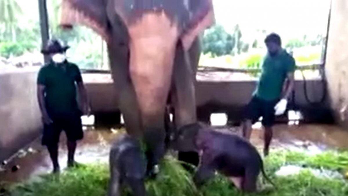 Vahşi yaşam yetkilileri, Sri Lanka'da bir filin yaklaşık 80 yıl sonra salı günü ilk kez ikiz doğurduğunu söyledi.