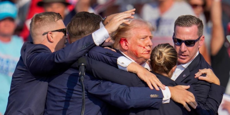 Trump, 13 Temmuz 2024'te Pensilvanya'da Butler bölgesinde mitingde kürsüden destekçilerine hitap ettiği sırada silahlı saldırıya uğramış, mitinge katılan 1 kişi ölmüş, 2 kişi yaralanmış, ABD Gizli Servisi saldırganın etkisiz hale getirildiğini açıklamıştı.