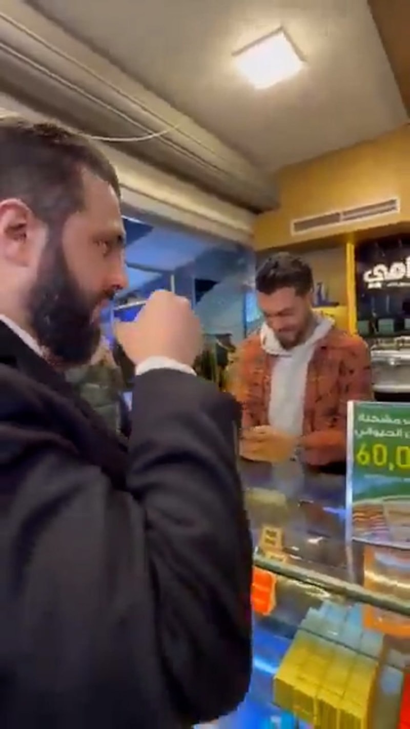 Şara'nın alışveriş yaptığı market çalışanı Heysem Hayek, Cumhurbaşkanı Şara'nın dükkanına gelerek bisküvi aldığını söyledi.