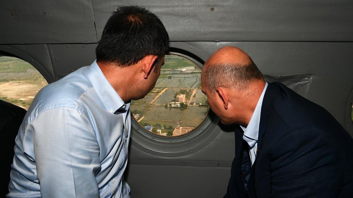 İçişleri Bakanı Süleyman Soylu ile Çevre, Şehircilik ve İklim Değişikliği Bakanı Murat Kurum, Pakistan'da selden etkilenen Badin'de havadan incelemelerde bulundu.
