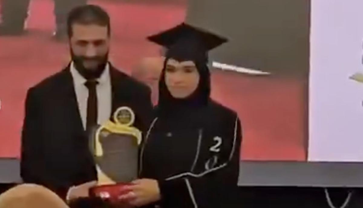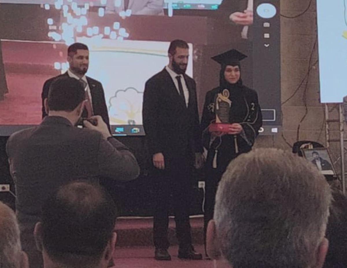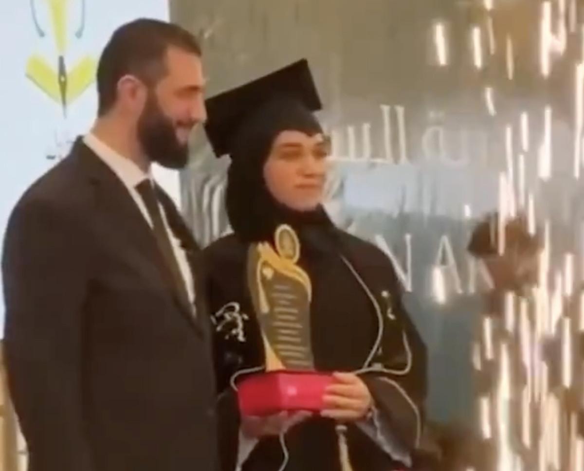 Ahmed Şara, eşi Latife Durubi’nin, İdlib Üniversitesi Edebiyat ve Beşerî Bilimler Fakültesi’ndeki mezuniyet törenine katıldı.