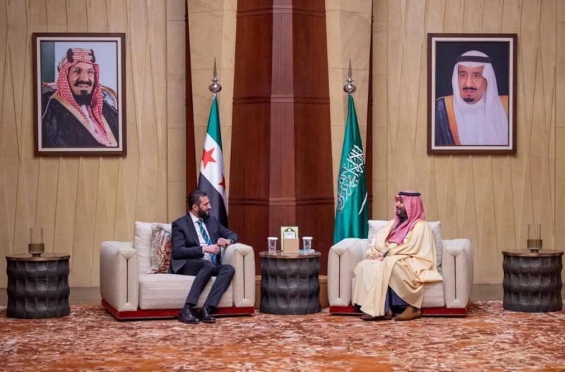 Eş-Şara temasları kapsamında Suudi Arabistan Veliaht Prensi Muhammed bin Selman ile bir araya geldi.