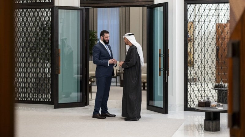 Eş-Şara, resmi temaslarda bulunmak üzere Birleşik Arap Emirlikleri’ne (BAE) geldi. Suriyeli lider ziyareti kapsamında BAE Devlet Başkanı Şeyh Muhammed bin Zayid Al Nahyan ile bir araya geldi.