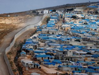 Türkiye'nin yerleştirdiği güvenlik duvarının Reyhanlı tarafının hemen arkasındaki Suriye'nin Atma bölgesine gelen mülteciler, olası bir saldırı durumunda Türkiye'ye sığınmak için bekliyor.
