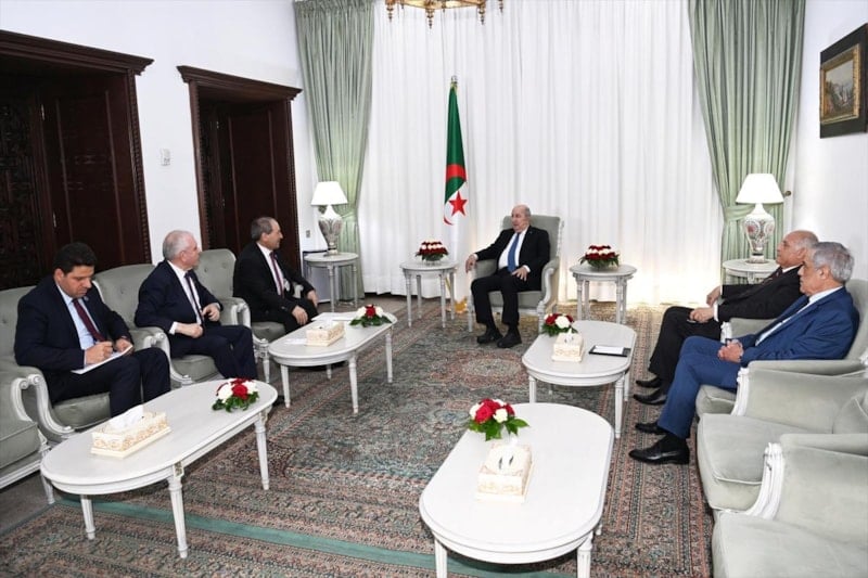 Şam yönetiminin Dışişleri Bakanı Mikdad, Cezayir'de Cumhurbaşkanı Tebbun tarafından kabul edildi. Mikdad, görüşmede Tebbun'a, Esad'ın özel mektubunu verdi.