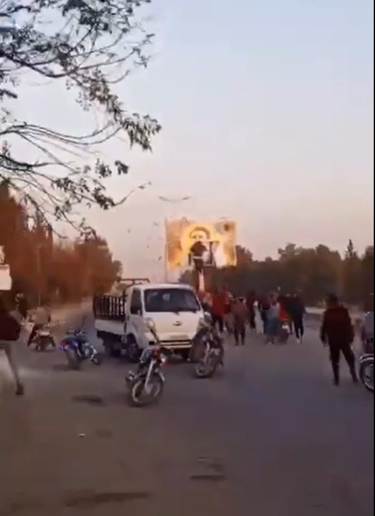 Kutlamalar çerçevesinde meydanlarda bulunan Esad ailesine ait heykeller tek tek yıkılırken, Rakka kentinden de başka bir görüntü geldi..