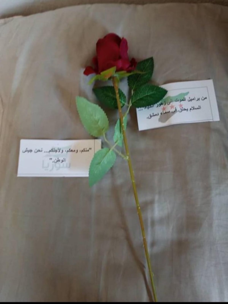 Suriye’ye ait helikopterler, meydanda toplanan halkın üzerine gül yaprakları bırakarak devrimin bu önemli yıldönümünü kutladı.