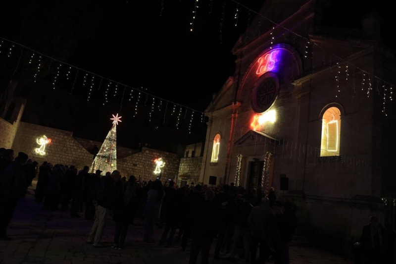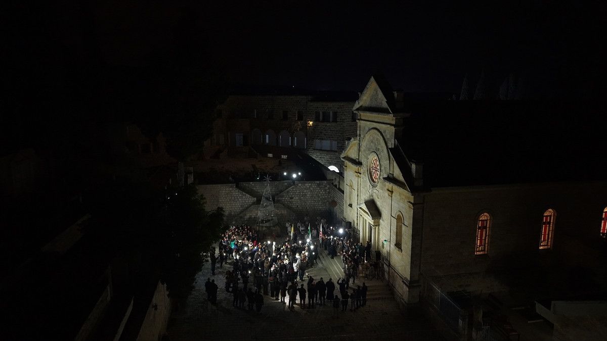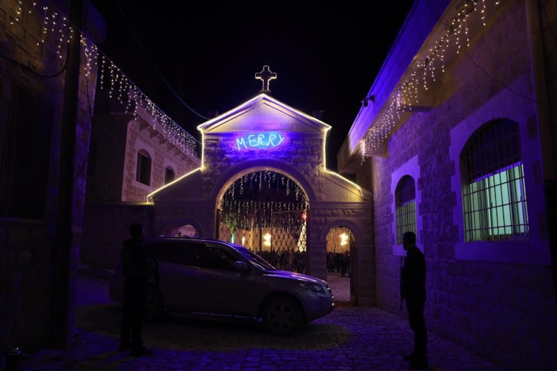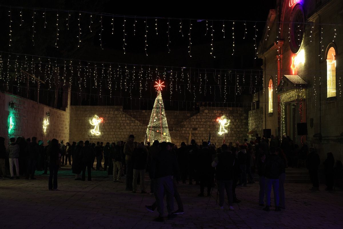 İdlib'in batısındaki Kıneye köyündeki Latin Kilisesi’nde bölge halkı, 14 yıl aradan sonra Noel için kurulan çam ağacı ışıklandırıldı, halkın katılımıyla düzenlenen etkinlikte kutlama yapıldı.