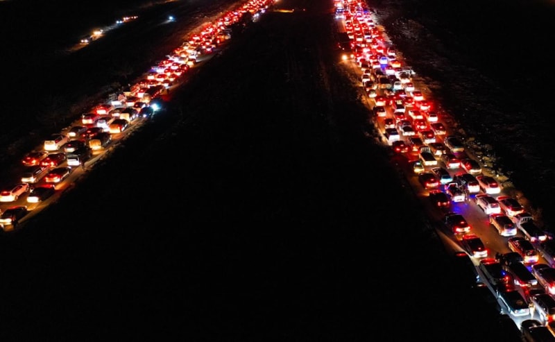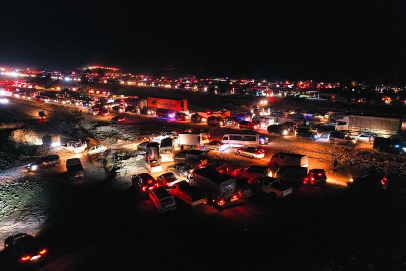 Suriye'de 61 yıllık Baas rejiminin devrilmesinin ardından, ülkenin birçok noktasından Şam'a dönüş yolunda uzun araç kuyrukları oluştu.