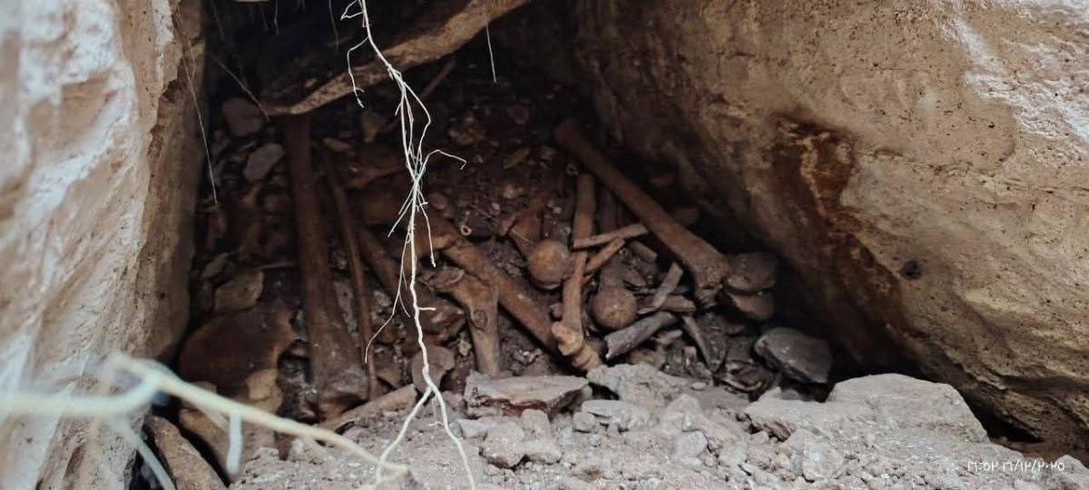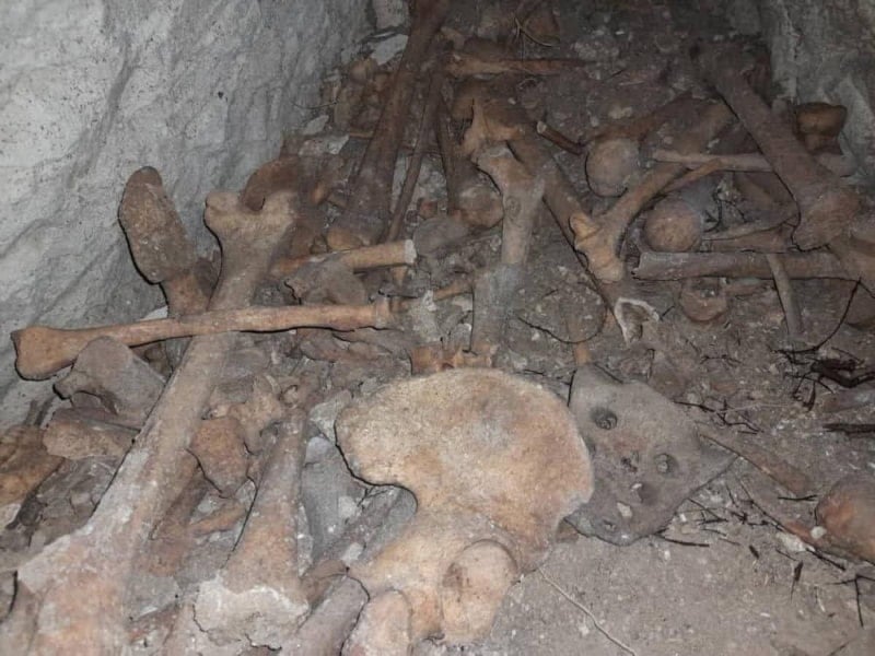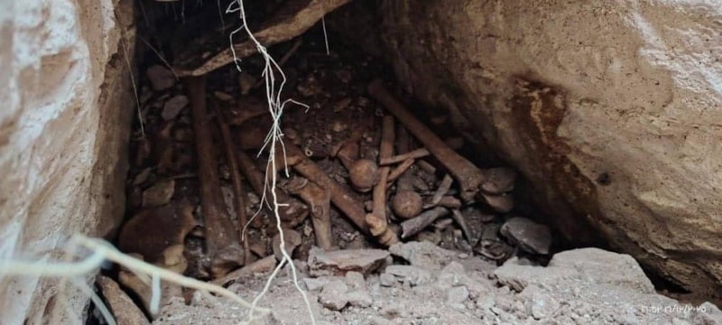 Görüntülerde rejim tarafından öldürülen Suriyelilere ait kemikler yer aldı.