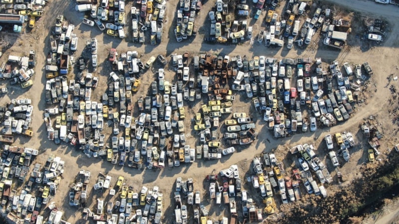 Esad rejiminin el koyduğu Suriyeli sivillerin araçları, askerlerin oluşturduğu garajda topladığı binlerce araç, çürümeye terk edildi.