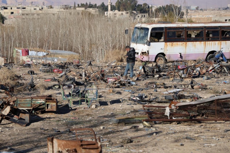 Esad rejiminin devrilmesiyle birlikte hapisten çıkan Suriyeliler, kullanılamayacak durumdaki araçlarına ulaştı.