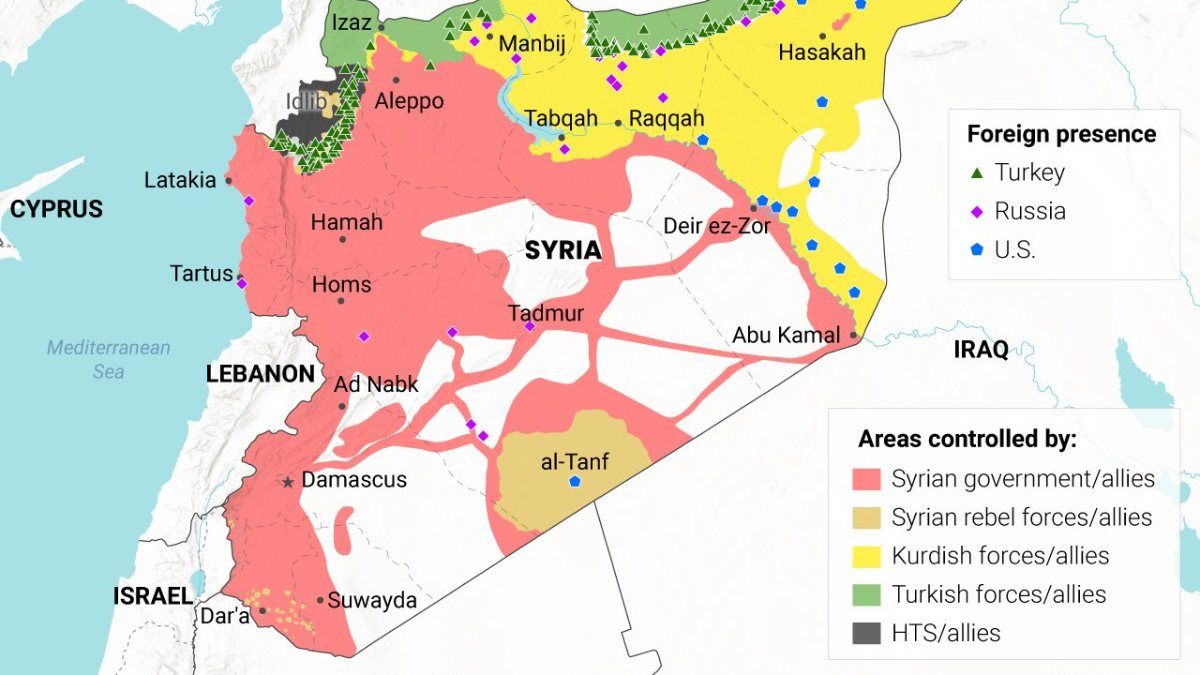 ABD merkezli Newlines Enstitiüsü, Suriye'de hangi bölgede kimlerin olduğuna dair bir harita paylaştı.