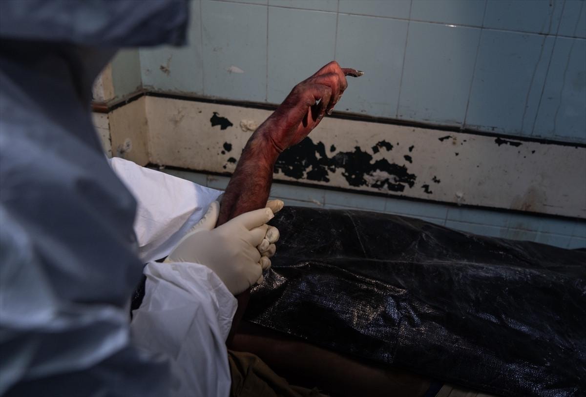 Harasta Askeri Hastanesi morgunda torbalara istiflenmiş ve işkence izleri taşıyan yaklaşık 40 ceset, otopsi işlemleri için El Müctehid Hastanesi’ne taşındı.