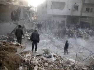 Özellikle havadan kuvvetli bir bombardımana tutulan yerleşim yerlerinde ağır yıkım meydana geldi. Yıkılan binaların arasından cansız bedenler, sivil savunma birlikleri Beyaz Baretliler tarafından çıkartıldı.