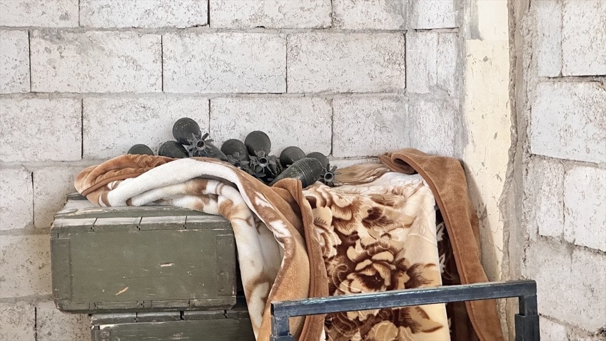 Kilisenin bodrum katında patlamaya hazır bombalarla teçhiz edilmiş dronlar, montajlanmak üzere getirilmiş dron parçaları ve çeşitli bomba düzenekleri kameraya yansıdı.