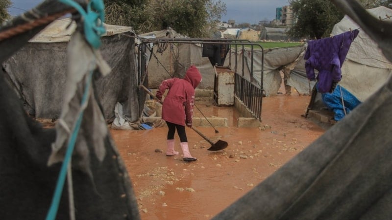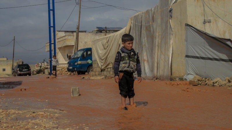 Suriye'nin Halep kentinin kuzeybatısında sağanak sonucu taşkınlar, devrik rejim ve destekçilerinin yerinden ettiği sivillerin kaldığı bazı kampları olumsuz etkiledi.