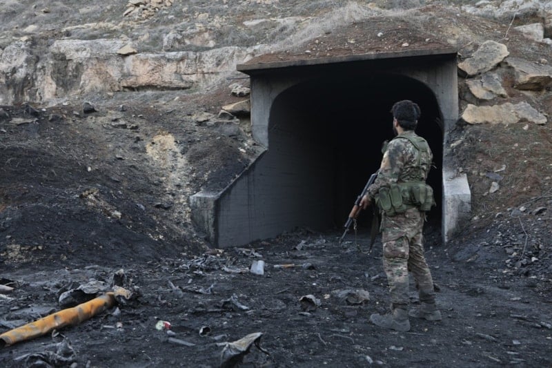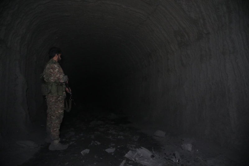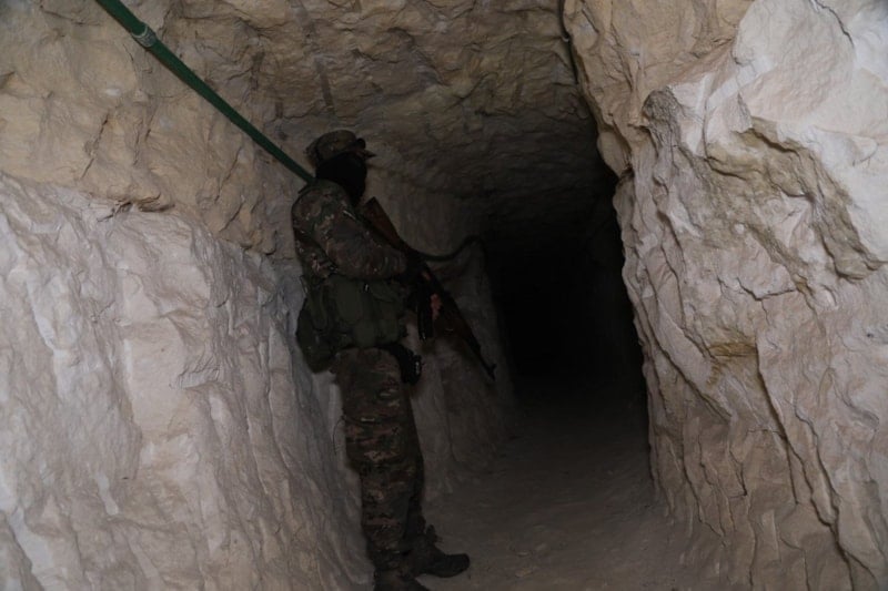 Ordu güçleri, araçların giriş yaparak mevzilendiği ve birbirine bağlantılı geniş bir tünel ağına sahip alanlarda incelemelerini sürdürüyor.