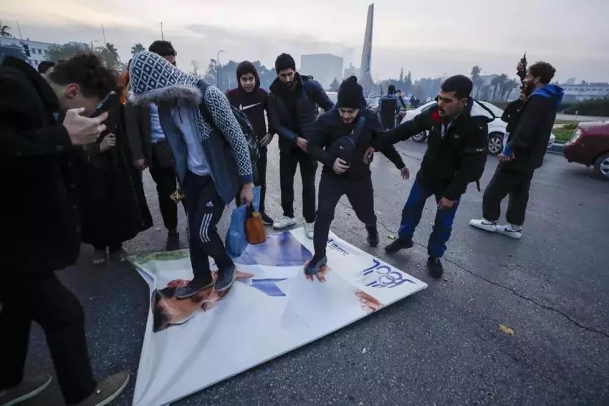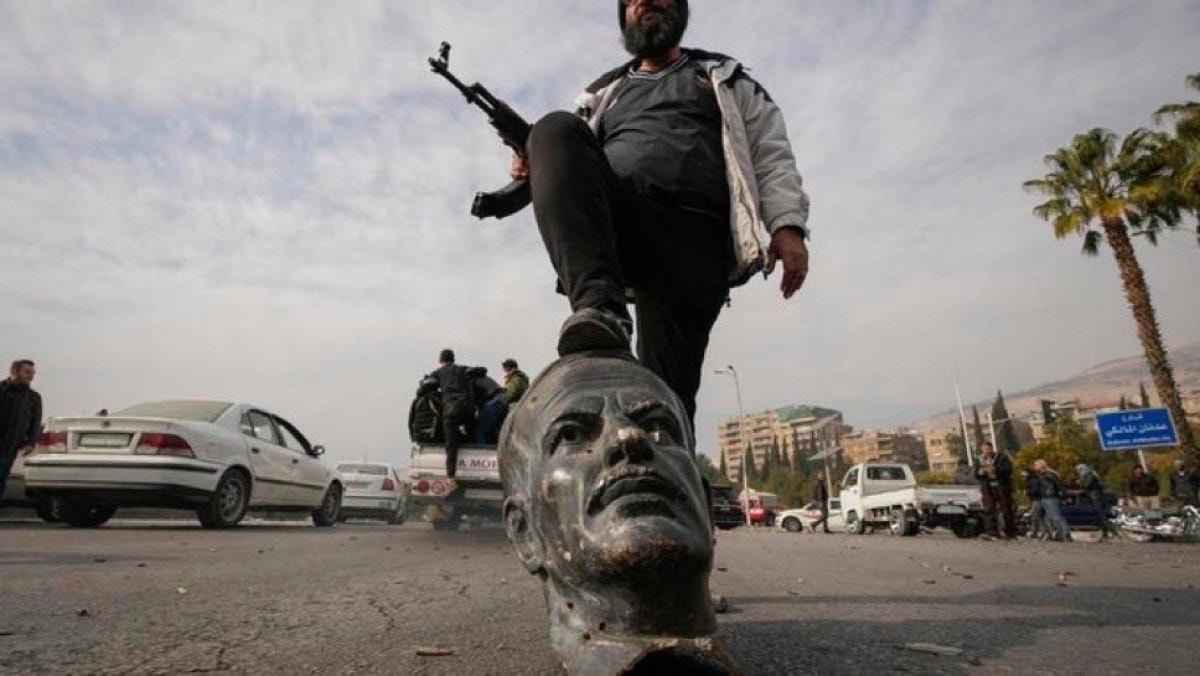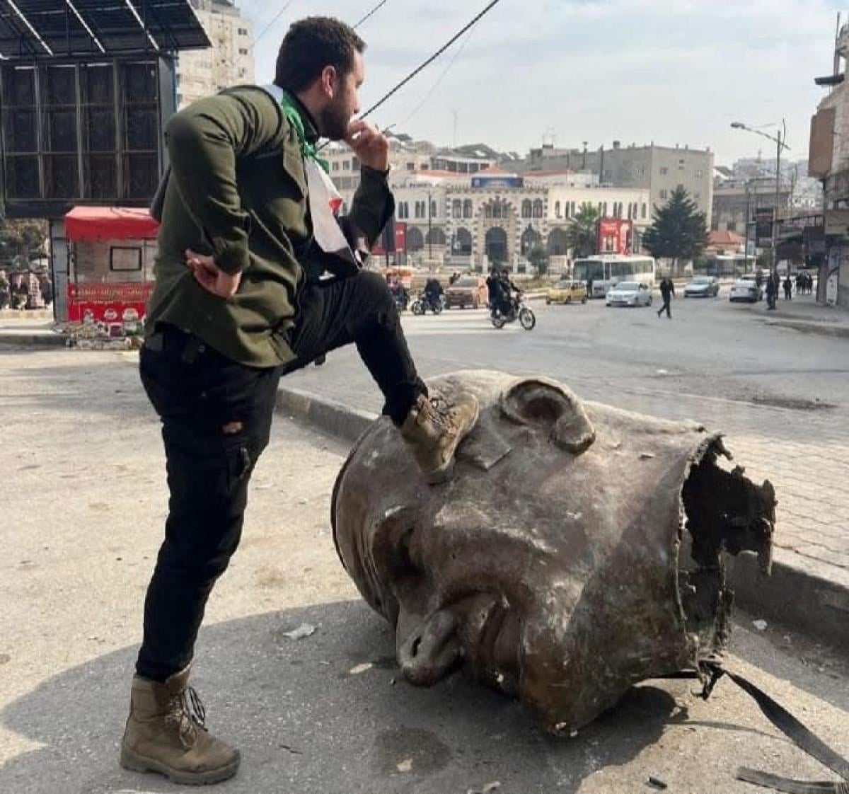 Beşar Esad'ın kaçmasının ardından sokaklara dökülen rejim karşıtları, kent meydanında bulunan Esad heykellerini yıkmaya başladı.