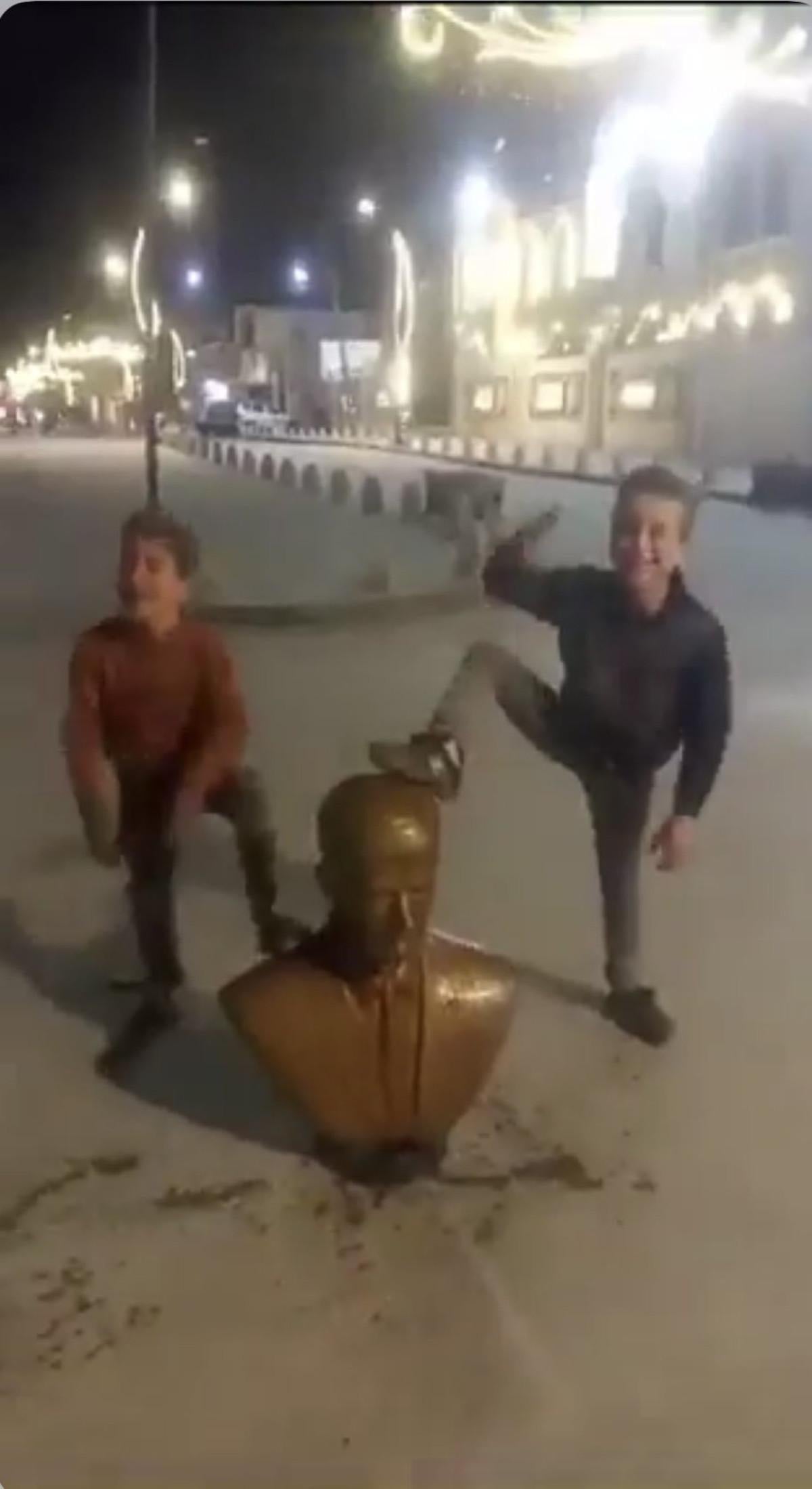 Heykellerin yıkılarak parçalandığı anlar ise kameralara yansıdı.