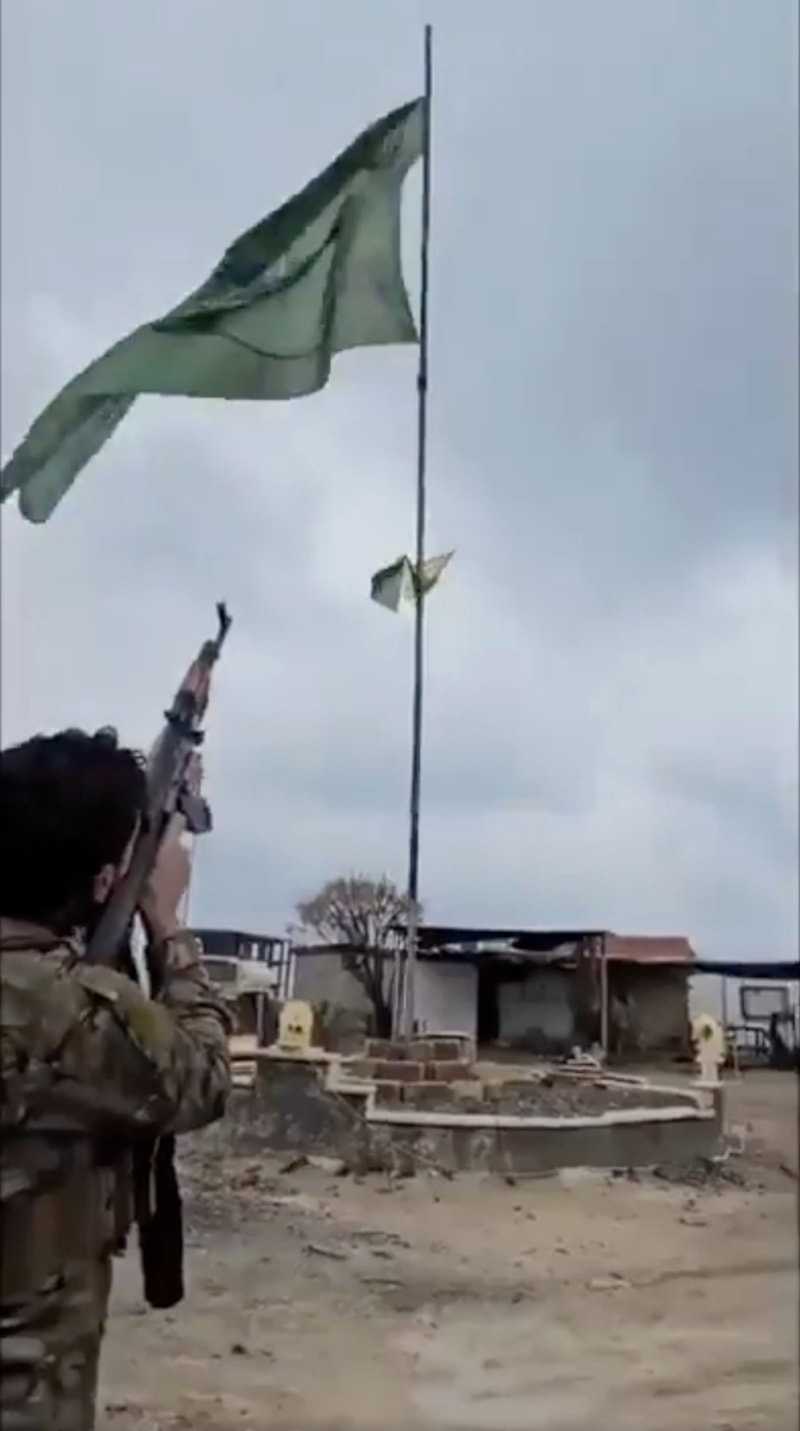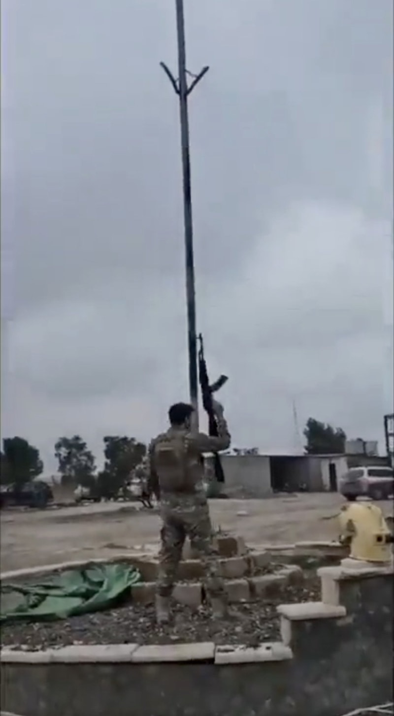 Suriye'nin kuzeydoğusunda geri çekilen YPG/SDG terör örgütüne karşı ilerleyen Suriye ordusundan bir askerin, direkteki sözde bayrağı silahıyla vurarak düşürmesi sosyal medyada etkileşim aldı.
