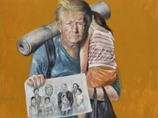 Belçika'da mülteci olarak yaşayan Abdalla Al Omari, dünya liderlerini mülteci olarak resmederek sergiledi.