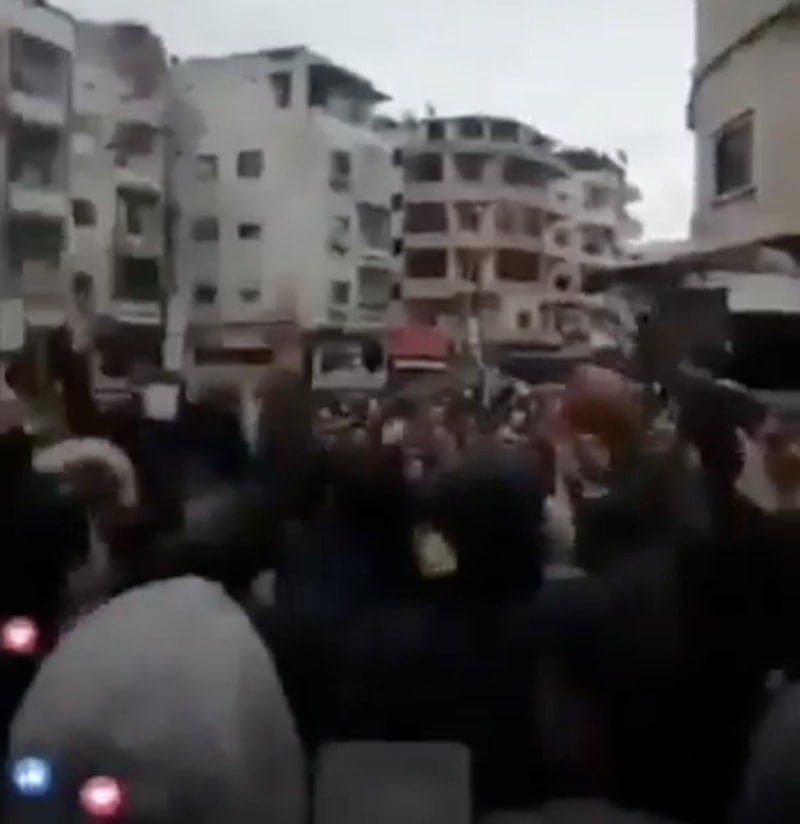 Lazkiye’nin Ceble ilçesinde bir araya gelen Suriyeli Sünni ve Aleviler, ayaklanma çağrısı yapan İran'a yönelik protesto düzenledi. Birlik mesajının verildiği protestolarda, "Defol buradan İran, Suriye halkı birdir tektir" sesleri yükseldi.